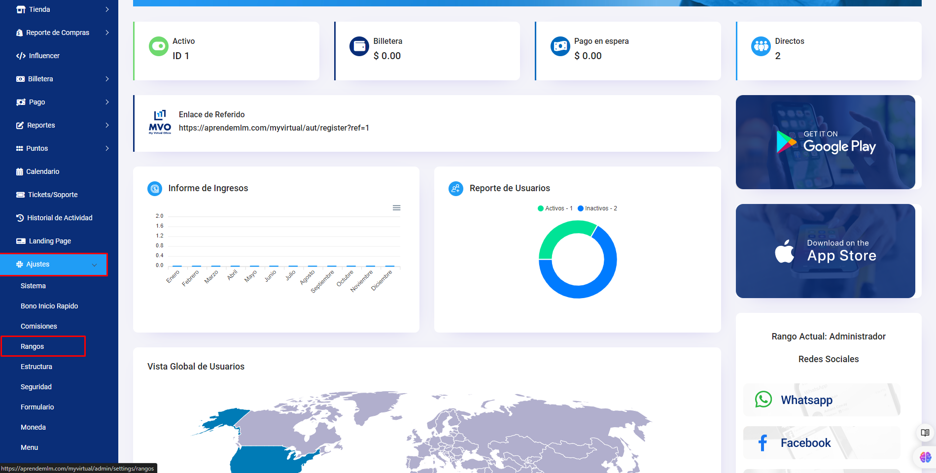 1- Una vez ingresamos a nuestra oficina virtual, En el Menú-->Ajustes-->Rangos