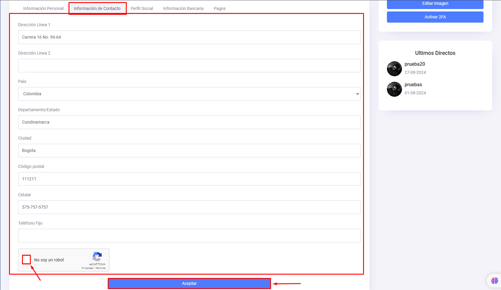 Una vez editado el apartado deseado le damos un Clic a (no soy un robot) y damos (Aceptar)