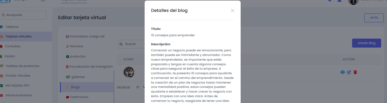 Galería, Blogs y Testimonios