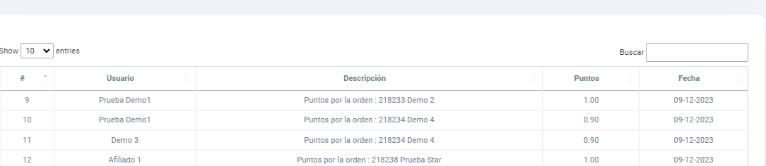 En su menú en la parte izquierda se dirige a PUNTOS en este modulo encontramos los siguiente aspectos: